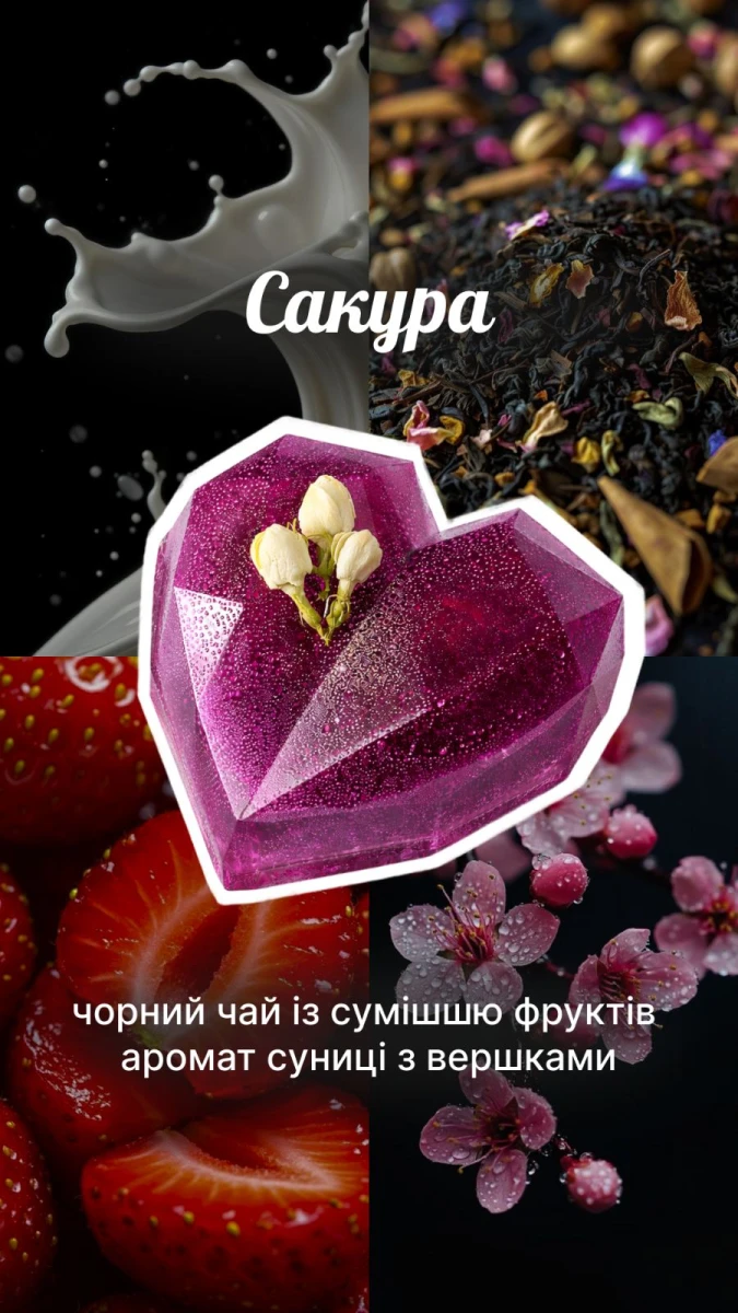 Чайна бомбочка "Сакура" - це чорний чай з сумішю фруктів. Аромат суниця з вершками.