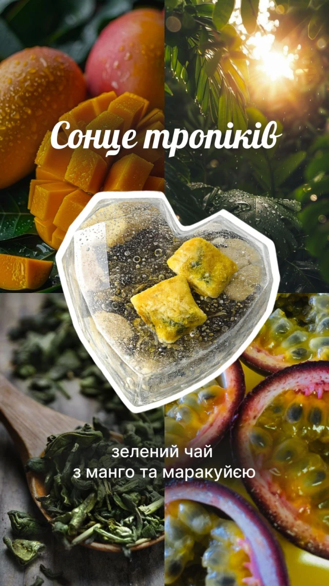 Чайна бомбочка "Сонце Тропіків" - це зелений чай з манго та маракуйєю. Неймовірний аромат та смак чаю.