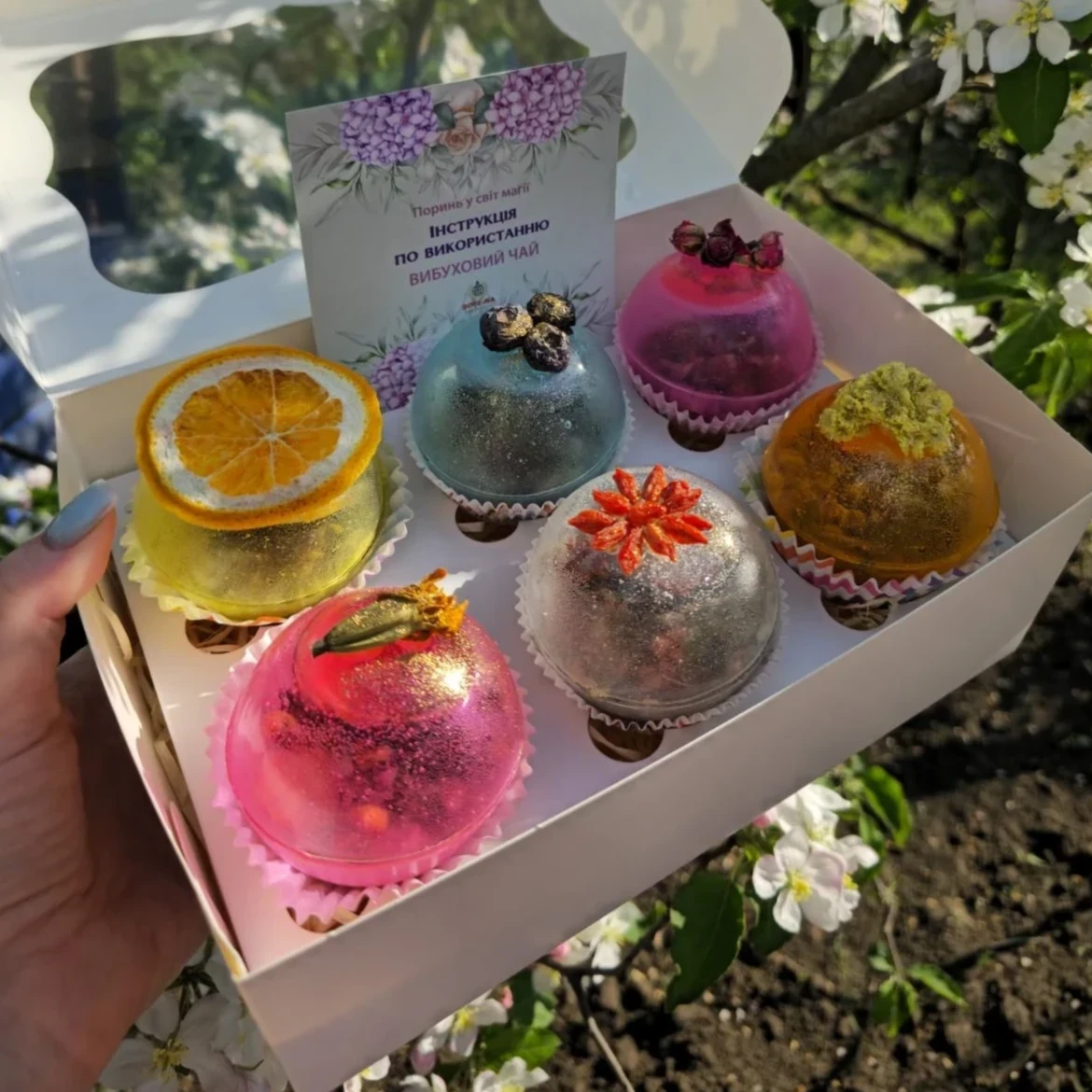Подарунковий набір з 6-ю великими чайними бомбочками ручної роботи у подарунковій упаковці